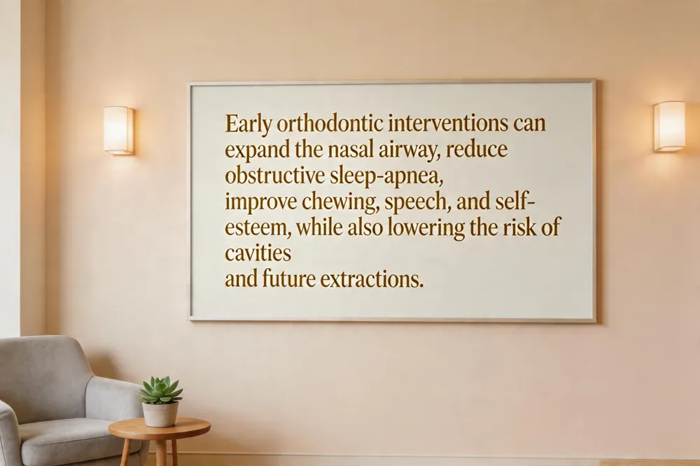 Early interceptive orthodontics does more than straighten teeth. By guiding jaw growth with devices such as palatal expanders or functional appliances, it can enlarge the nasal airway and reduce obstructive sleep‑apnea, especially when a narrow palate or low‑lying tongue is the cause. Orthodontists work with sleep‑medicine specialists and may use mandibular advancement splints or clear aligners to keep the airway open, often decreasing the need for a CPAP machine. Correcting bite problems also improves chewing, speech and breathing, which together boost a child’s self‑esteem and reduce bullying risk. A well‑aligned smile makes social interactions easier and confidence higher. Finally, early alignment simplifies oral hygiene, lowering cavities and gum disease, and prevents later extractions or surgery, saving time and cost. Trielle Orthodontics in Union, NJ offers a free initial consult and personalized plans to achieve these health and confidence benefits.