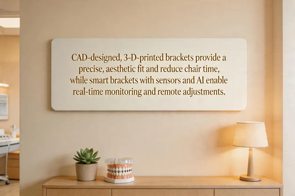 Recent advances in orthodontic brackets include tooth‑colored ceramic designs for discreet aesthetics, self‑ligating systems that cut friction and chair‑time, antibacterial nanocoatings, and 3‑D‑printed patient‑specific brackets. Smart brackets now embed micro‑sensors and AI algorithms that monitor force and movement in real time, enabling remote adjustments and fewer office visits.