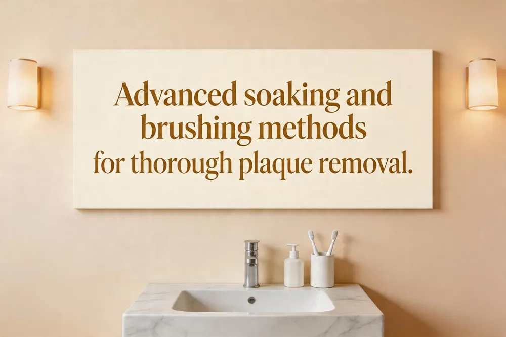 2. Brush with a soft‑bristled toothbrush and mild soap – Use a dedicated, soft‑bristled toothbrush (never the one you use on your teeth) and a gentle dish‑soap or a non‑abrasive hand‑soap. Gently scrub all surfaces, paying special attention to acrylic areas and any metal wires. Avoid regular toothpaste; its abrasives can scratch the plastic or acrylic and create tiny pits where bacteria hide.