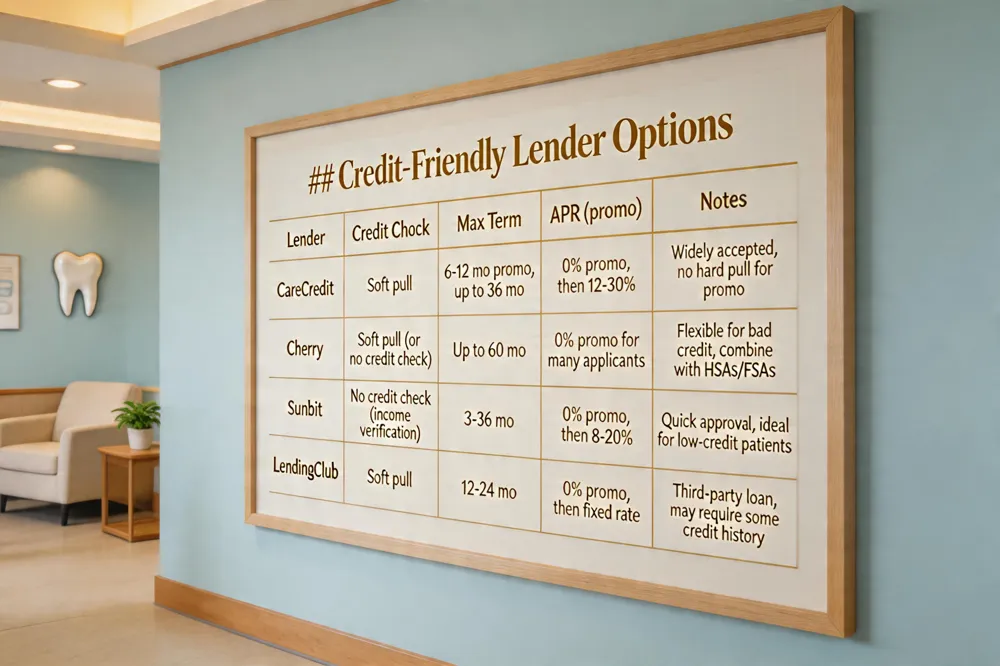 | Sunbit | No credit check (income verification) | 3‑36 mo | 0 % promo, then 8‑20 % | Quick approval, ideal for low‑credit patients |